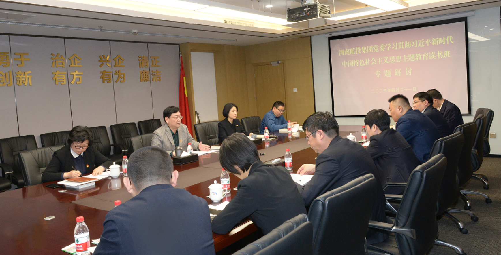 4月21日,河南航投集團(tuán)黨委理論中心組召開擴(kuò)大會(huì)議,開展學(xué)習(xí)貫徹習(xí)近平新時(shí)代中國特色社會(huì)主義思想主題教育讀書班專題研討。集團(tuán)黨委書記、董事長(zhǎng)張明超主持會(huì)議并講話,集團(tuán)領(lǐng)導(dǎo)班子成員和總部中層管理人員代表參加。