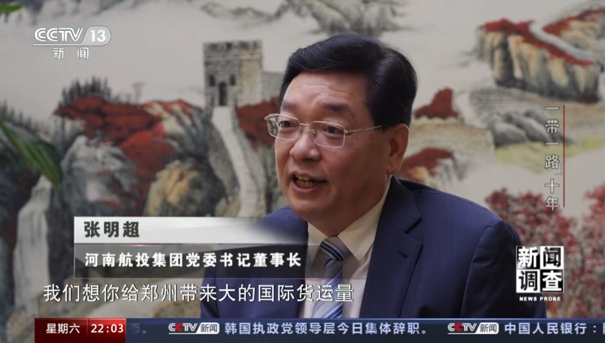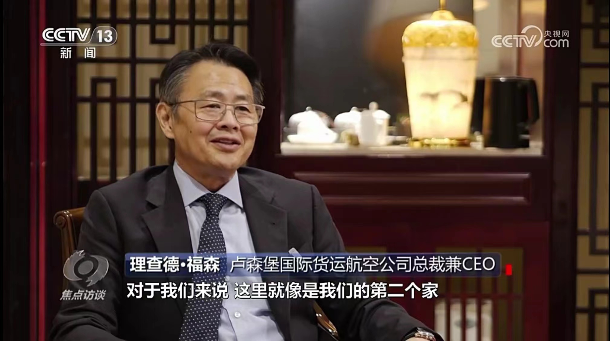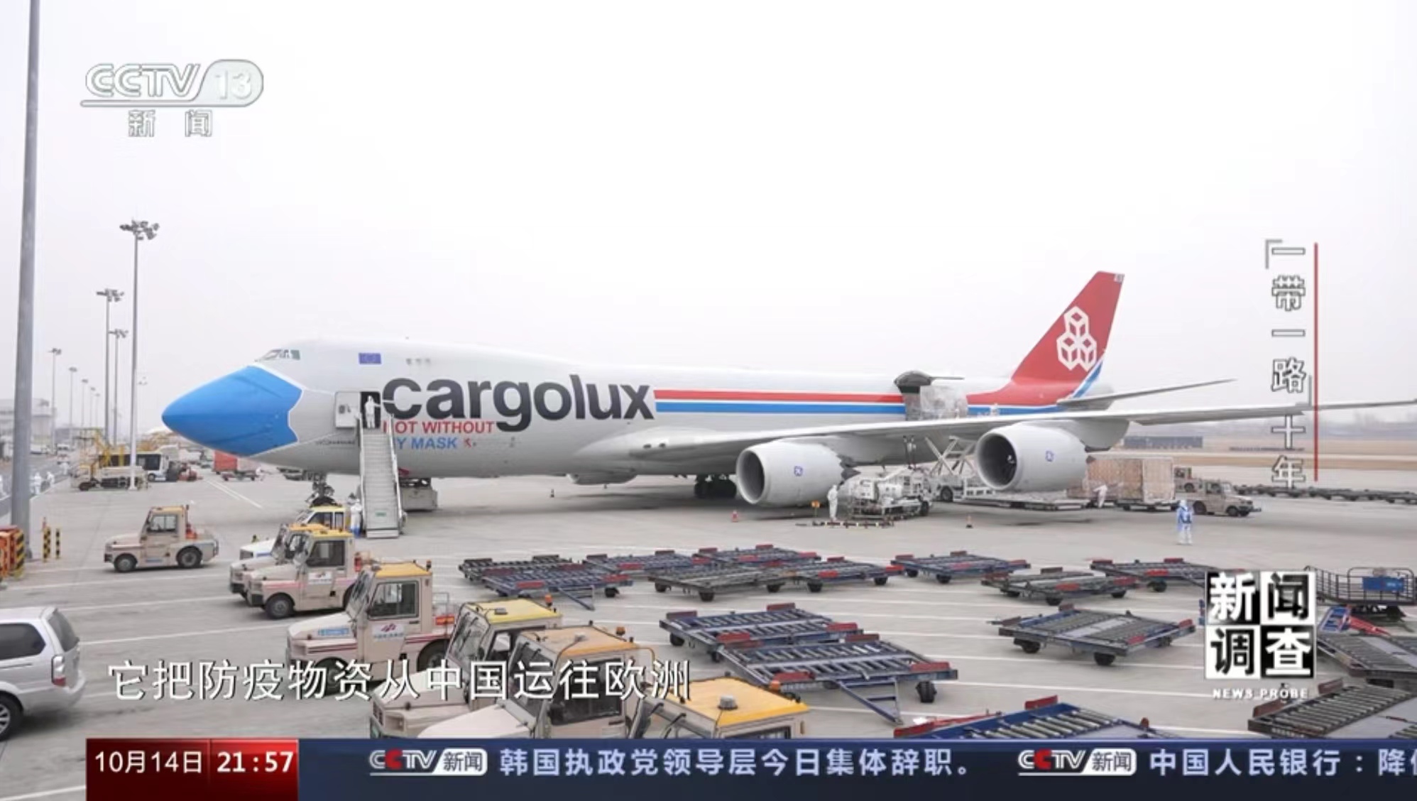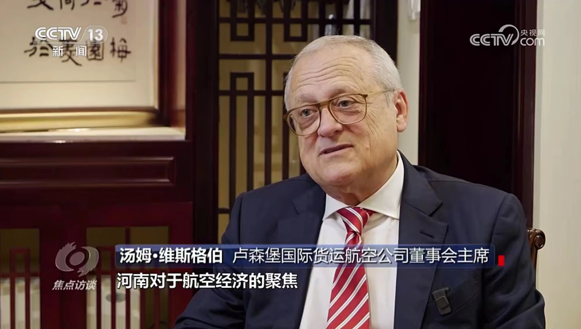 10月11日,央視《焦點訪談》播發(fā)系列報道“絲路同行”第一集——雙向奔赴的繁榮之路。報道中說,“一帶一路”倡議的提出,讓河南明確了突破區(qū)位限制、向藍天要效益的開放思路。通過采訪河南航投集團黨委書記、董事長張明超和盧森堡貨航董事會主席湯姆·維斯格伯、總裁兼CEO理查德·福森,報道回顧了鄭盧“空中絲綢之路”十年探索實踐和豫盧之間的友好情誼。節(jié)目評論道:“(河南航投與盧森堡貨航)之間早已超越了生意伙伴這一簡單的關系,多年的合作讓鄭州與盧森堡兩個航空樞紐之間的互聯(lián)互通真正實現(xiàn)了彼此雙方互利共贏和美美與共。這一切都在詮釋著‘一帶一路’倡議的核心要義。”