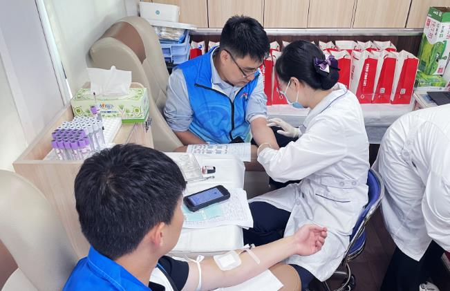 活動現(xiàn)場有條不紊。在醫(yī)護(hù)人員指導(dǎo)下,志愿者們有序進(jìn)行登記、體檢、采血等環(huán)節(jié),順利完成獻(xiàn)血。