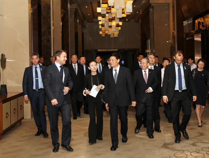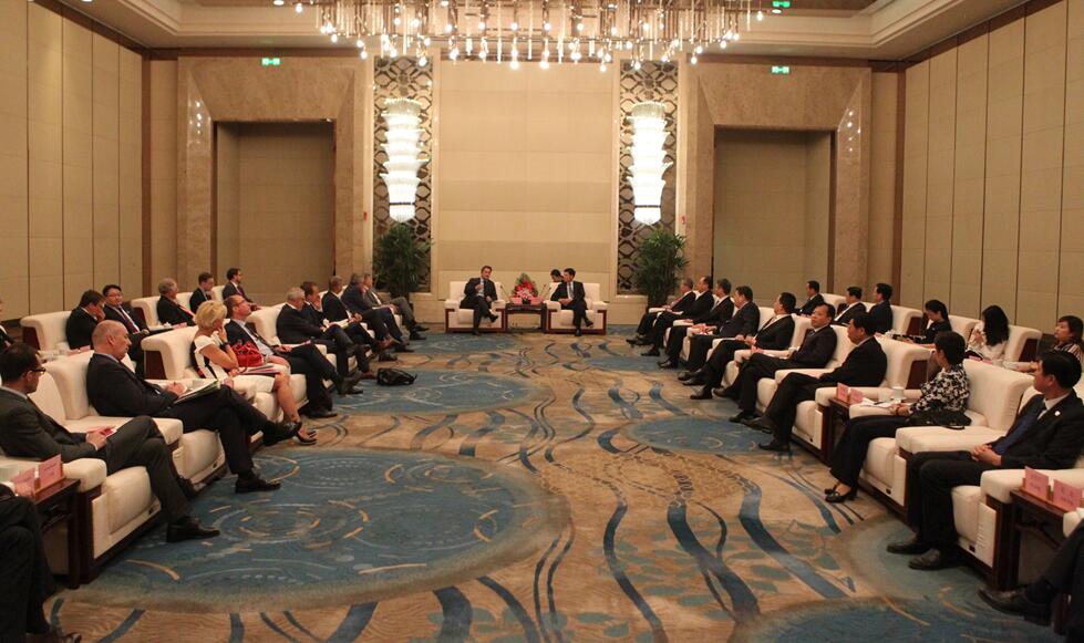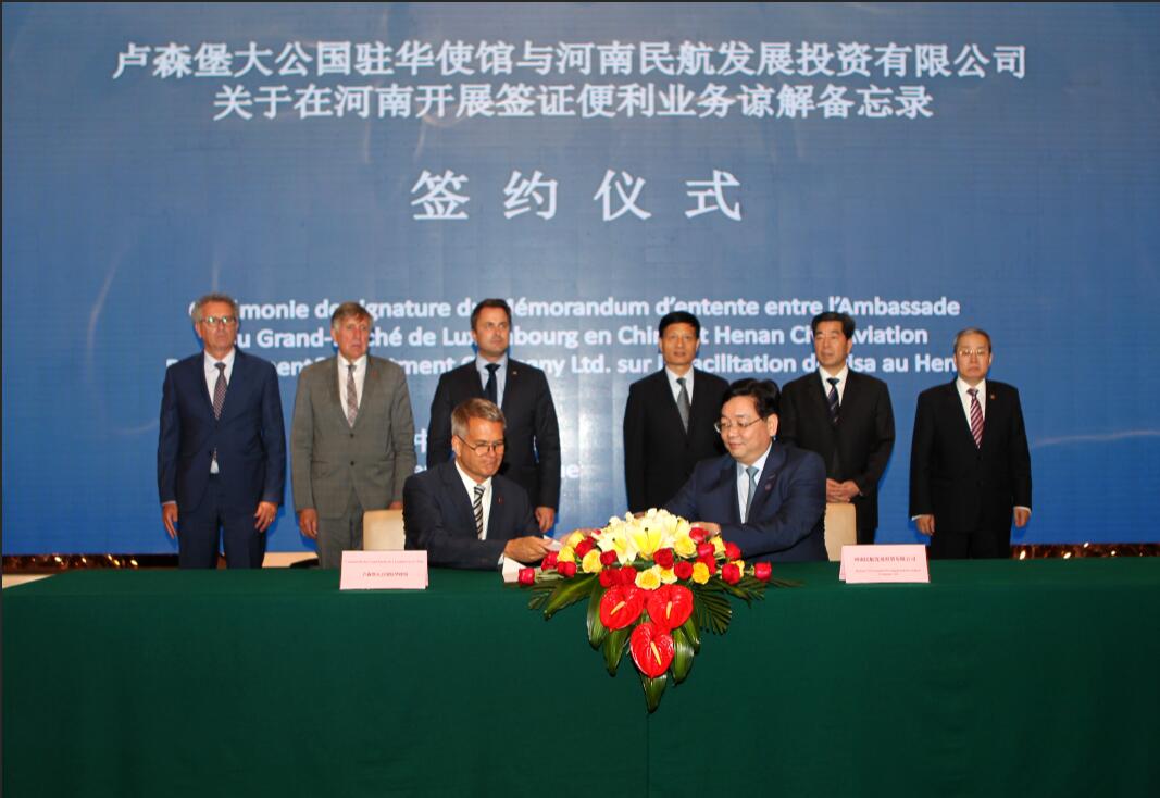 6月13日,省委書記、省人大常委會主任謝伏瞻在鄭州會見了來豫訪問的盧森堡首相格扎維埃?貝泰爾一行,并和省長陳潤兒共同見證有關(guān)合作協(xié)議的簽署。河南航投黨委書記、董事長張明超一同參加會見,并代表河南航投與盧森堡駐華大使石泰嵋簽署《關(guān)于在河南開展簽證便利業(yè)務(wù)諒解備忘錄》.