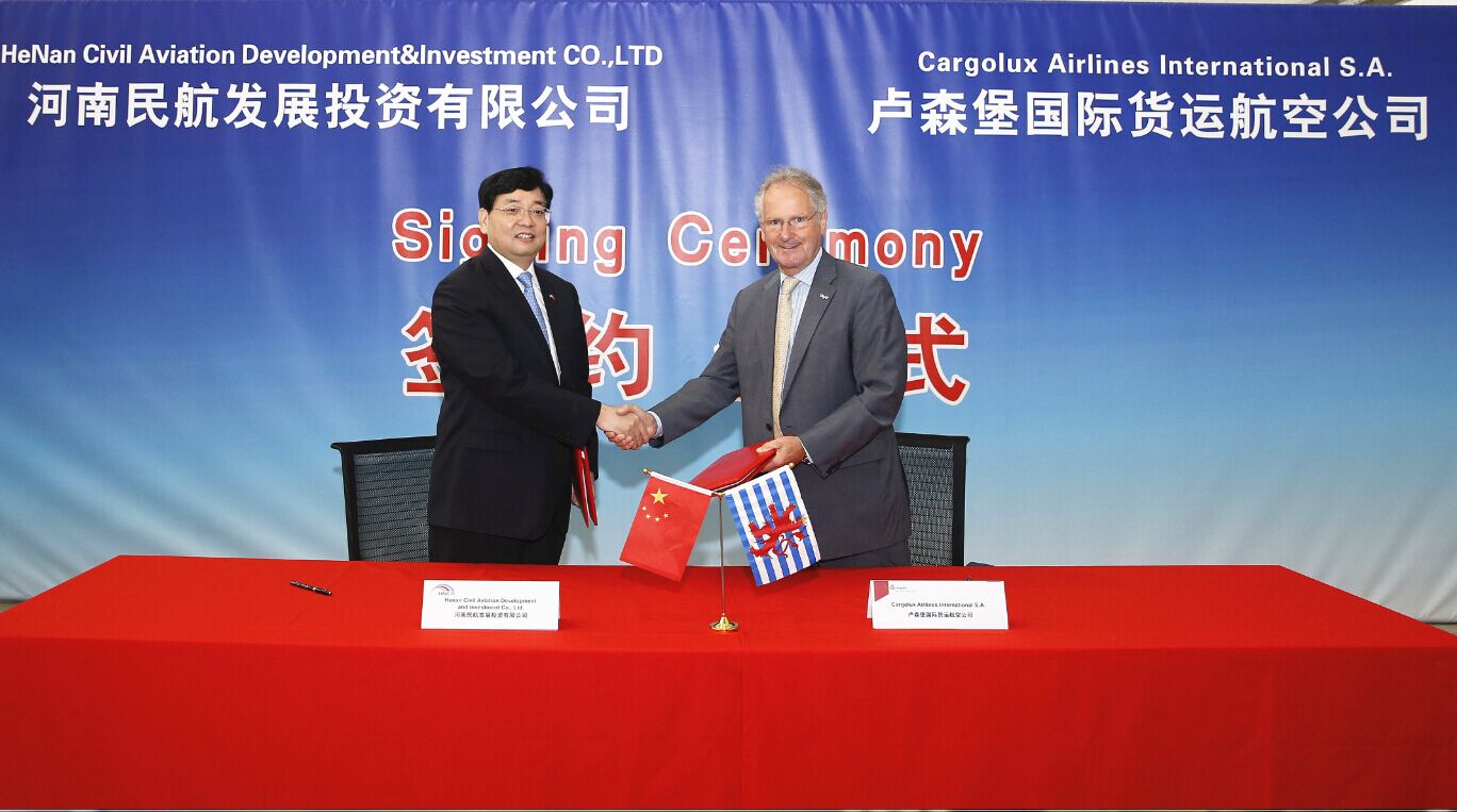 河南航投與盧森堡貨航簽署成立合資貨運(yùn)航空公司及飛機(jī)維修公司協(xié)議