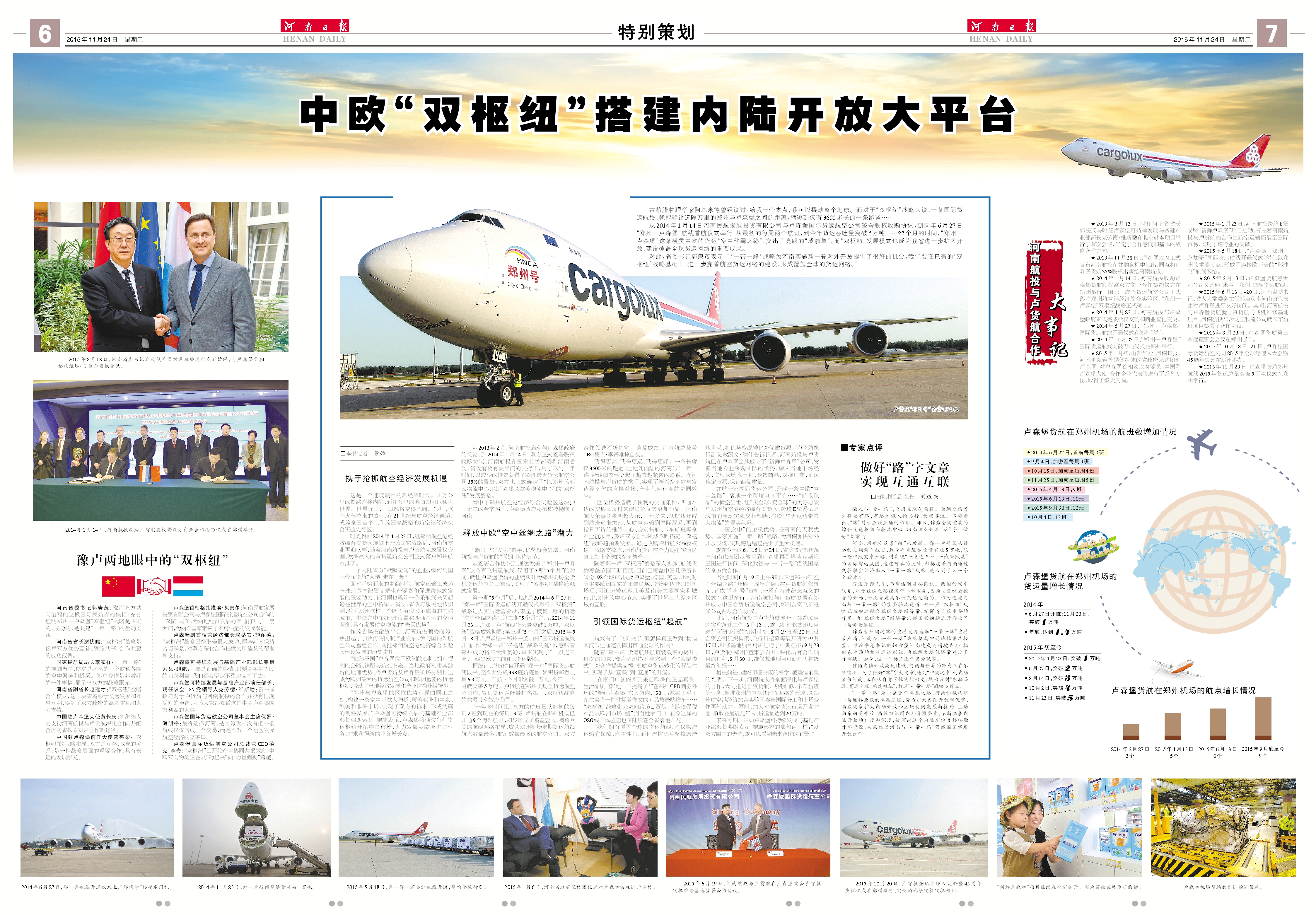2015年11月23日,盧森堡貨航鄭州航線2015年貨運總量突破五萬噸儀式在鄭州舉行。