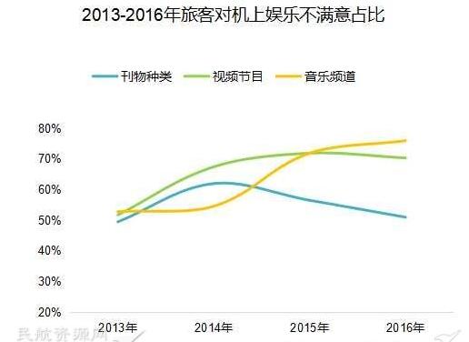 以上圖為例,音頻、視頻、旅客的滿意度一直在下降,不滿意度一直在上升。“就算機上娛樂項目更新得再快,做得再好,不可能滿足每一個旅客的個性化需求。但是只要打通了一個環(huán)節(jié),把互聯(lián)網(wǎng)接上了,聊微信也好,聽QQ音樂也好,還是聽其他的音樂也好,那都是旅客自己的事情,旅客滿意度會得到最大程度的提升。”